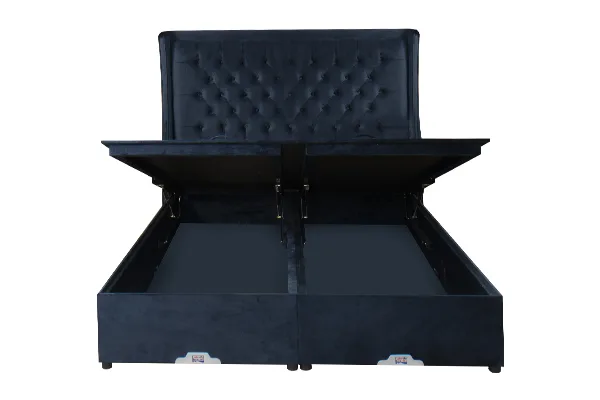 - السرير مزود بمكانيزم التخزين حيث يمكن رفع الغطاء الخارجي لقاعدة السرير